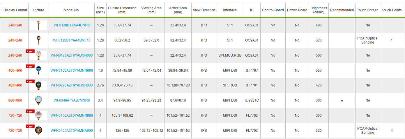 WINSTAR offers a comprehensive range of round TFT LCD display modules, available in sizes from 1.28" to 4", featuring advanced IPS wide viewing angle technology. With both capacitive touch and non-touch options, these round displays provide exceptional visual clarity and stability. The resolution ranges from 240x240 to 720x720 dots, making them suitable for a wide array of applications. These round TFT modules support multiple interfaces, including SPI, RGB, and MIPI, ensuring seamless integration into a variety of systems.